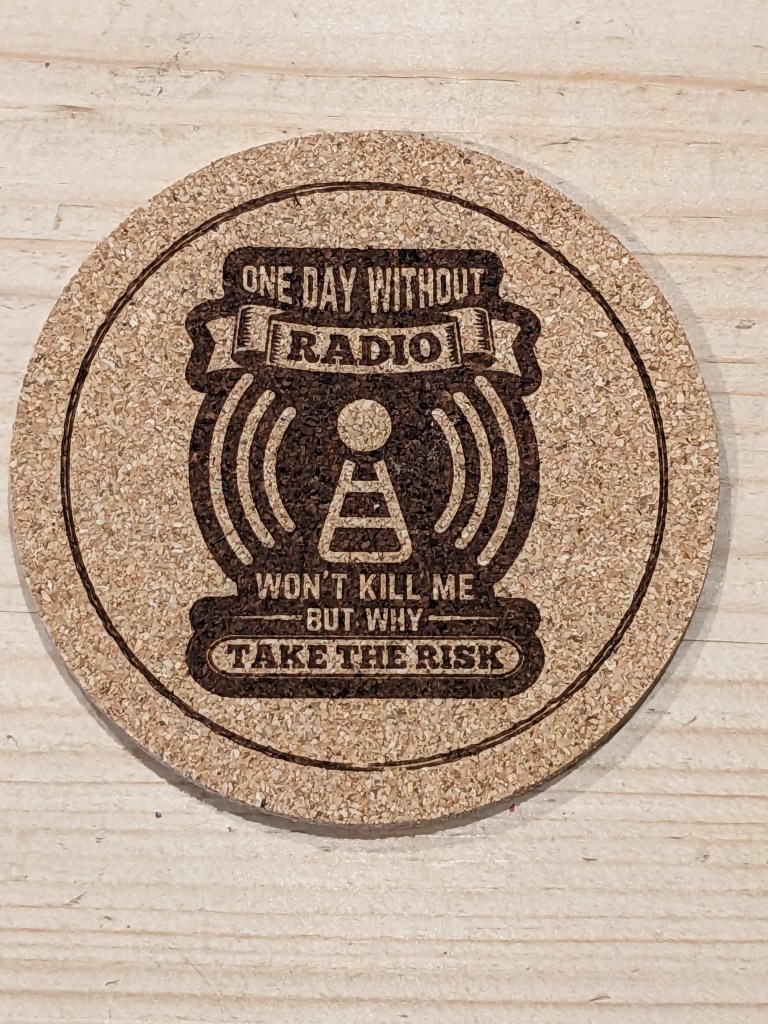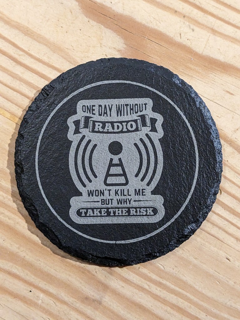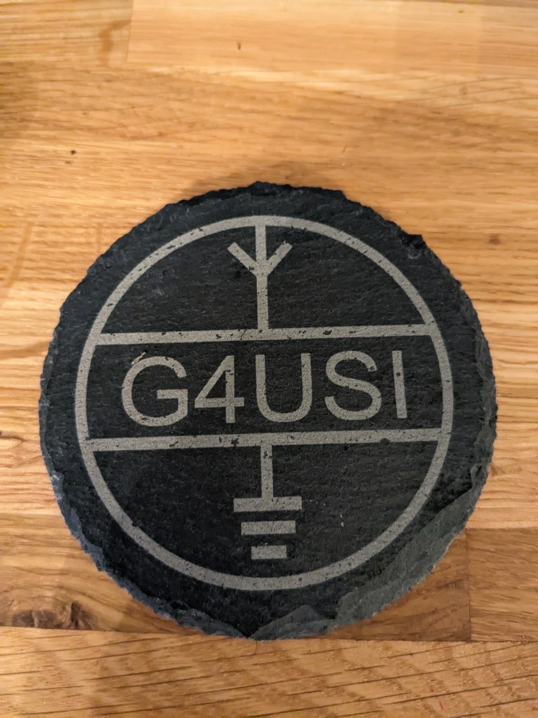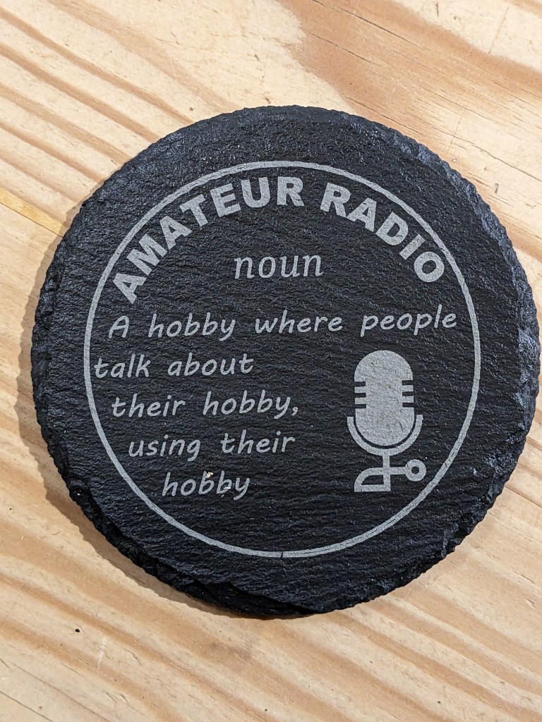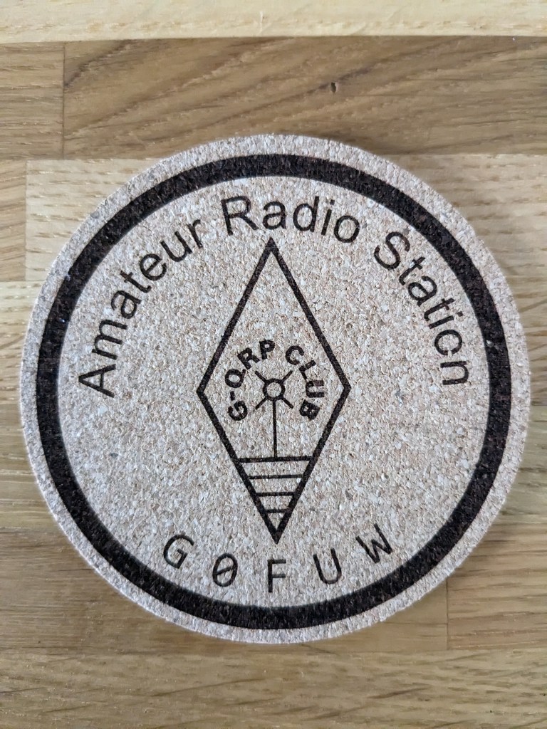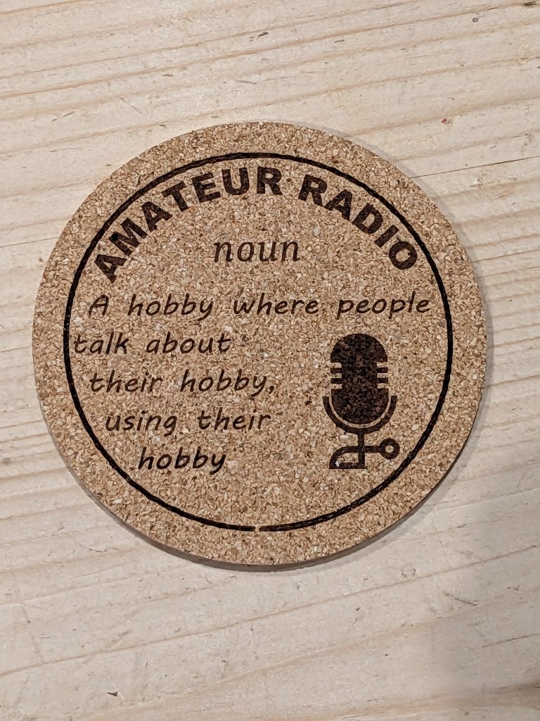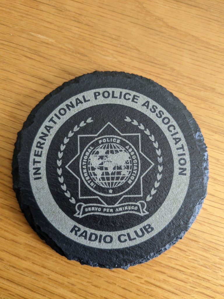Slate coasters (£5) are approximately 100mm in diameter, whilst cork (£2.50) are approximately 90mm. Given a clear coat of satin lacquer for protection. All can be personalised and contact from clubs with their logo is especially welcomed. A club order can significantly reduce postage costs too!